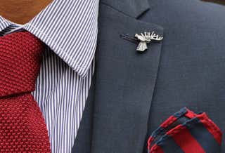 A discreet deer lapel pin, can work wonders in an otherwise professional outfit.