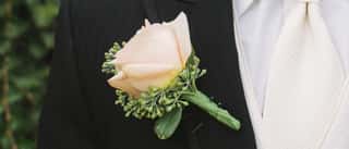 Note that with a tuxedo, you'll want to stick to a white flower for an elegant look.